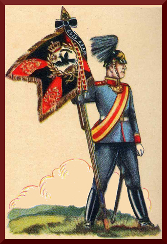 Dieses Bild bzw. die Bilder dieser Kategorie stammen aus den 1933 - 1934 erschienenen Zigarettenbildalben Fahnen- und Standarten-Träger- Album 1+2 herausgegeben von ALVA-Cigaretten, Orientalische Cigaretten-Companie- "Yosma" GmbH Bremen. Der Urheber der Bilder ist nicht zu ermitteln. Die Bilder sind vor mehr als 70 Jahren erschienen und können deshalb gemäß § 66 Anonyme und pseudonyme Werke des Gesetz über Urheberrecht und verwandte Schutzrechte als gemeinfrei betrachtet werden.