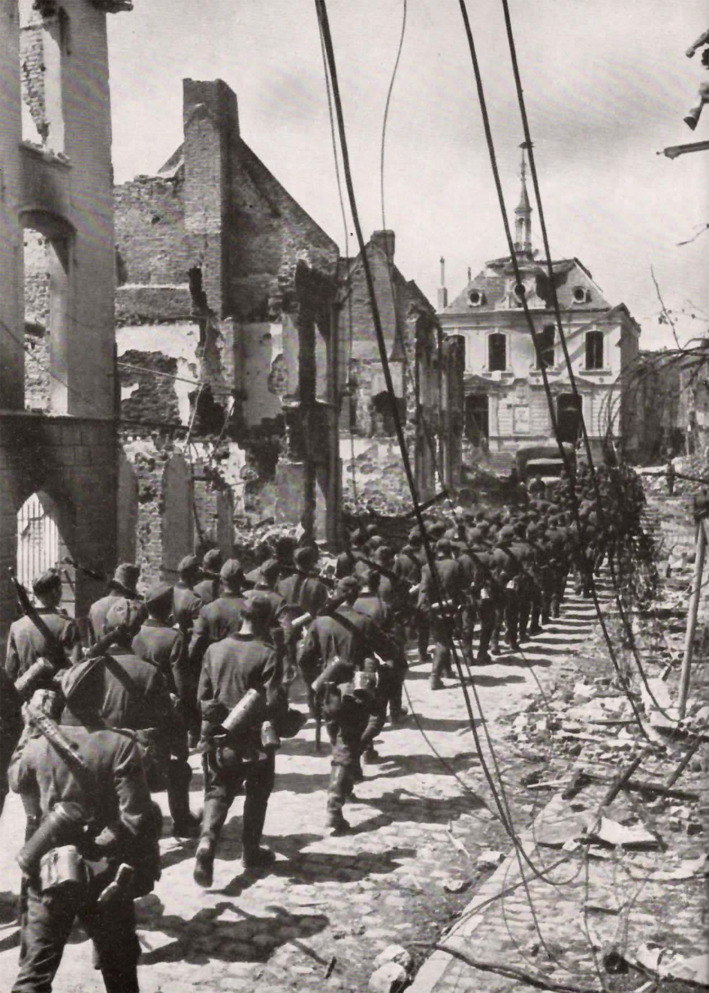 Voran durch Hitze und Staub, durch Trümmer und Verderben. Die Infanterie muß Schritt halten mit den vorbrausenden Motoren. Für sie gilt nur eine Parole: "Vorwärts!"