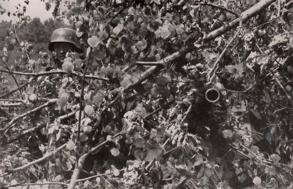 Nur das drohende Pak-Rohr und für Sekunden der spähende Schütze, ein Bild aus den Waldkämpfen im Argonnerwald, Juni 1940. Aber auch hier gerät die Feindfront bald ins Wanken.