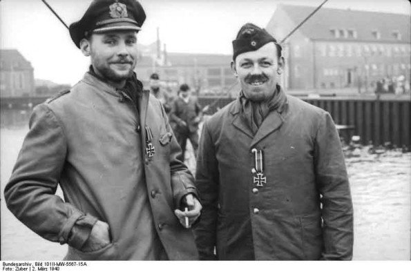 Bundesarchiv Bild 101II-MW-5567-15A Wilhelmshaven 2 U-Boot-Manner mit Eisernem Kreuz11-595x394