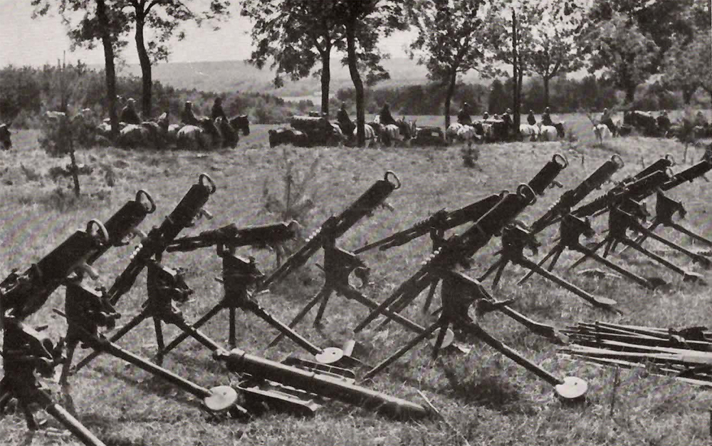 Rechts und links der Vormarschstraße nur Waffen und Munition, endlos die Reihe. Das geschlagene französische Heer wurde entwaffnet.