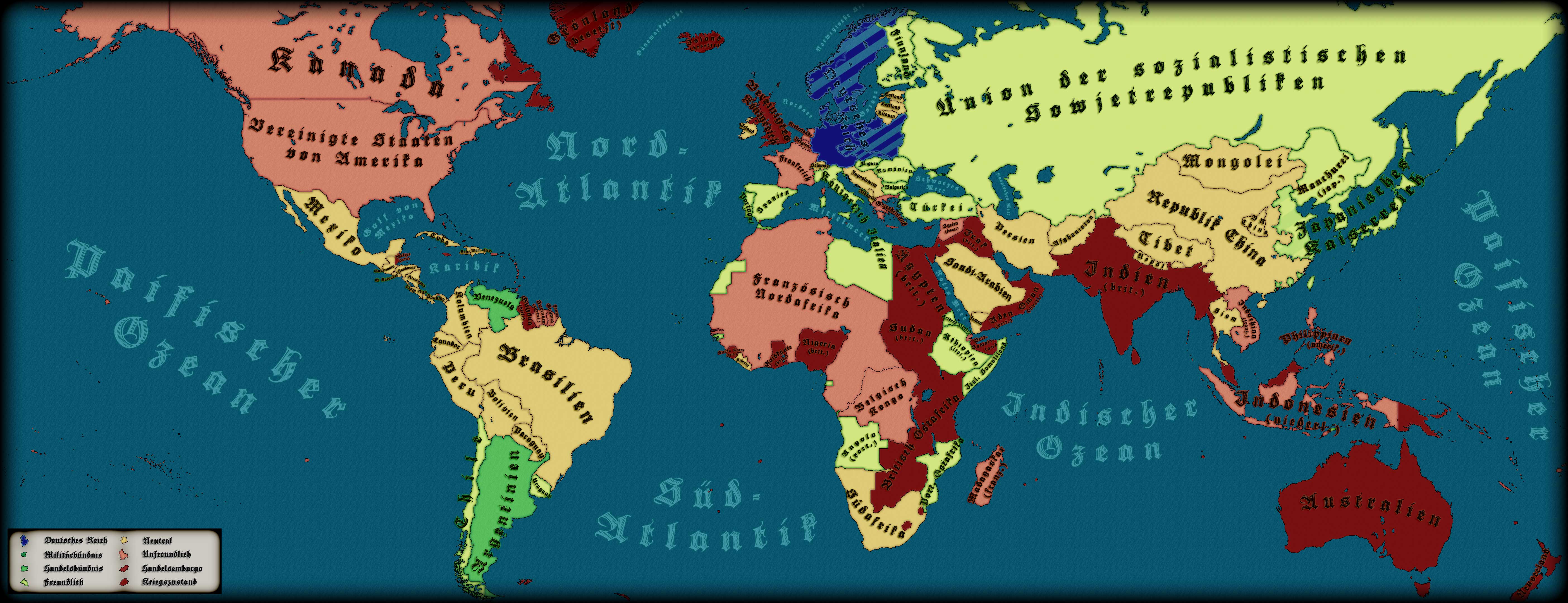 Die Karte zeigt eine ahistorische Entwicklung auf der gesamten Welt, Stand September 1940