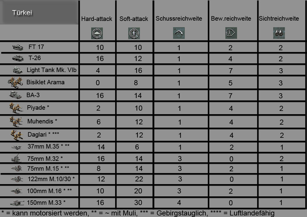 Selbst erstelle Einheitenliste für die Taktikschule