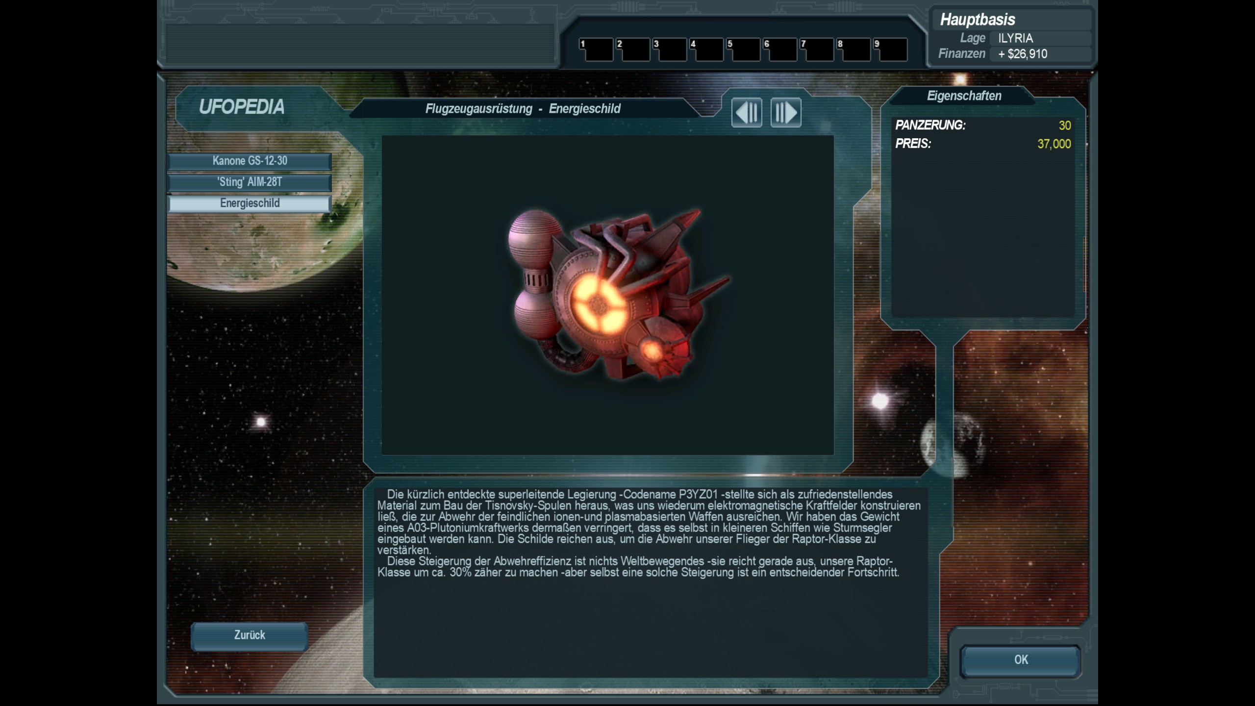 neu entwickeltes leichtes Energie-Schutzschild zur Erhöhung des Schutzes gegen alles Mögliche, um auch die Panzerung von Kampfflugzeugen / Abfangjägern, später auch Transportern und die Hüllen von zivlen Fahrzeugen, Booten, Flugzeugen, Schiffen etc. zu entlasten