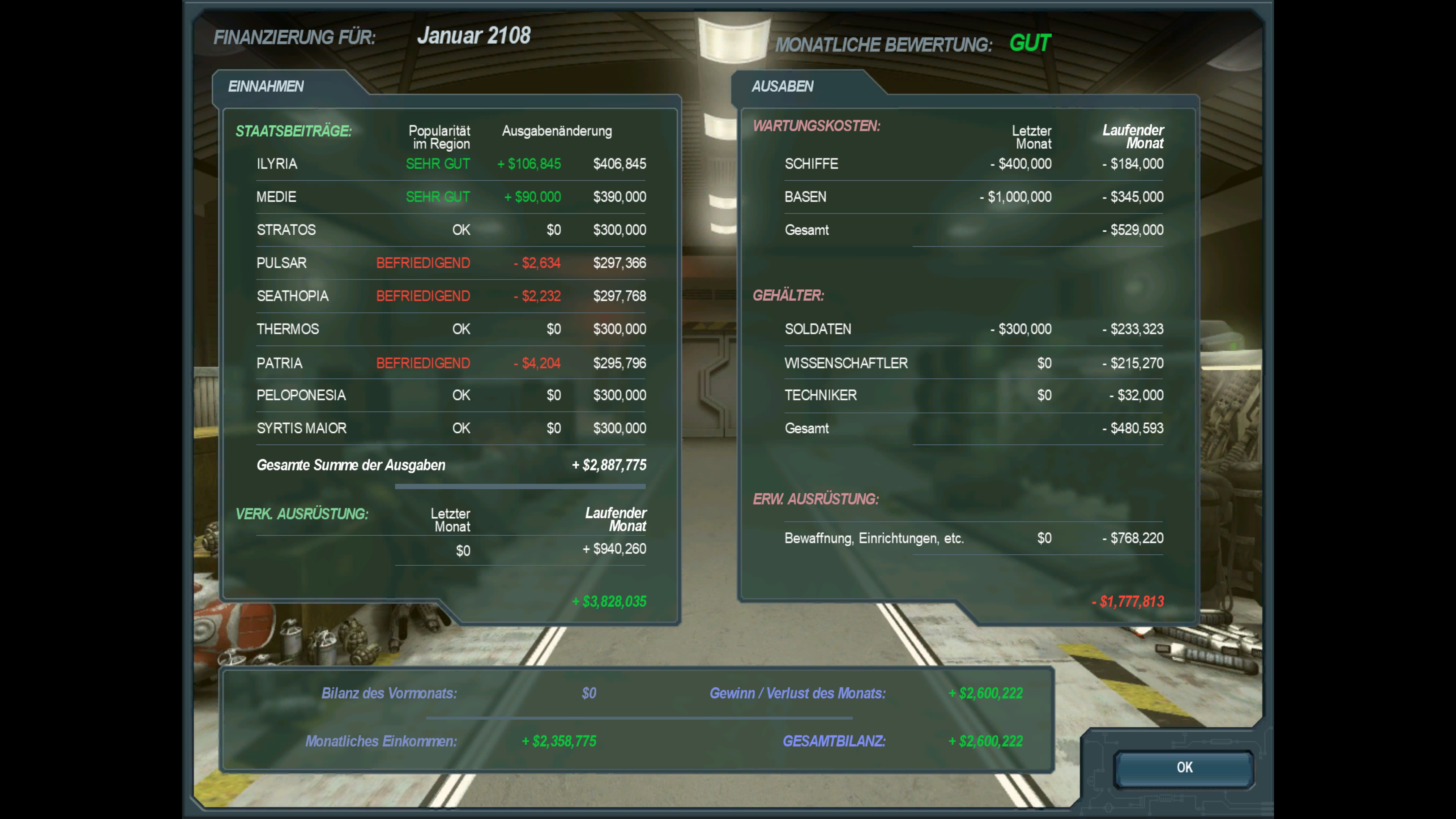 Monatsabschluss des Januars 2108