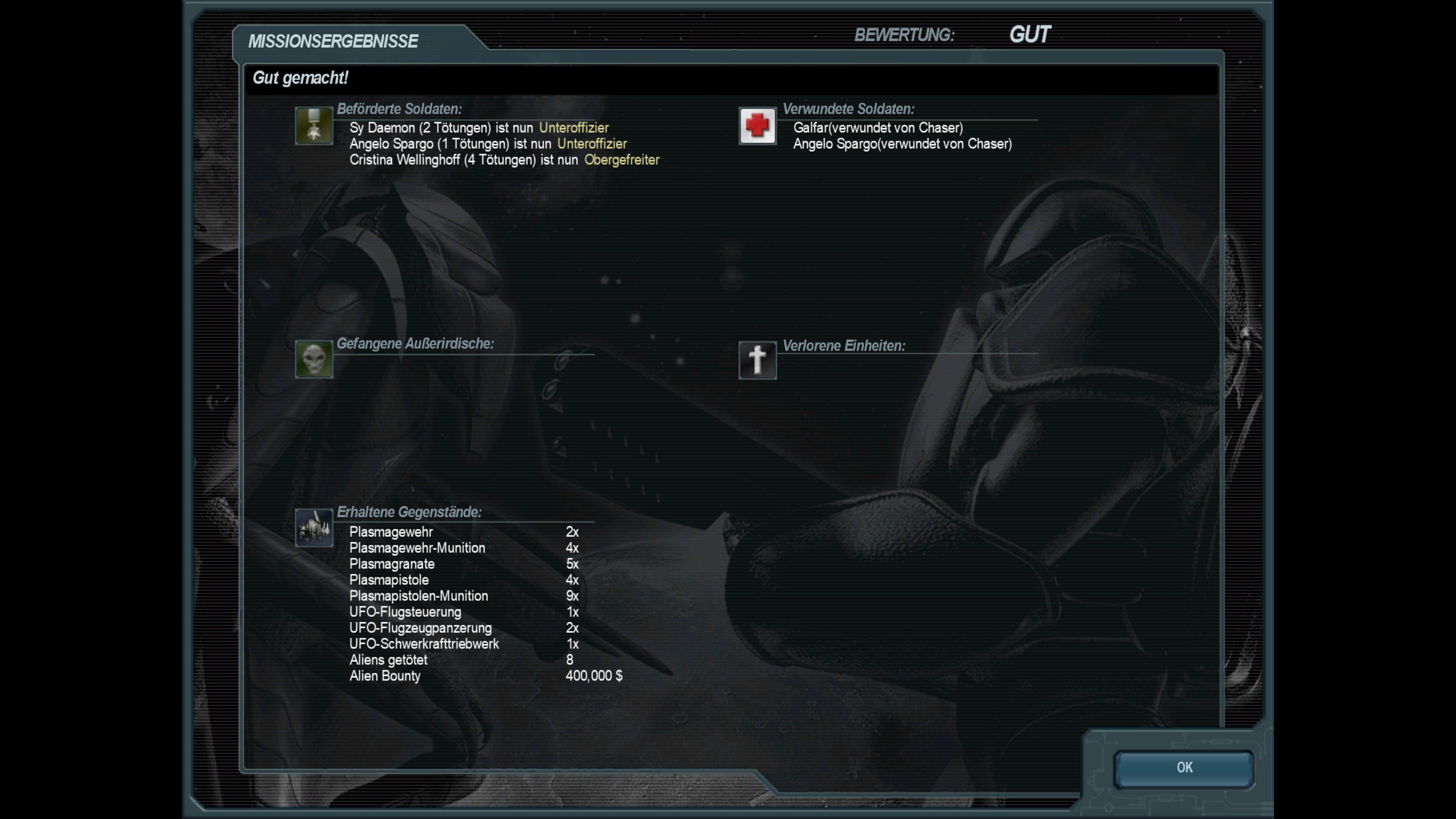 Abschluss der dritten Mission; Bergung eines außerirsichen Spähers