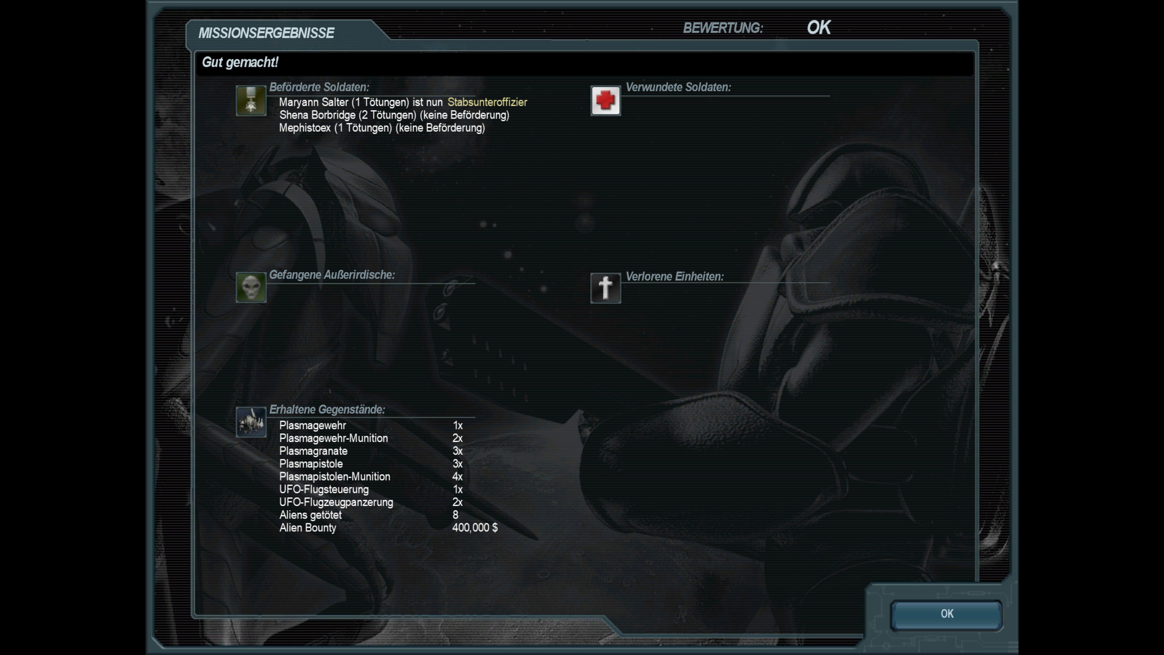 Abschluss der siebzehnten Mission; Bergung eines außerirdischen Spähers