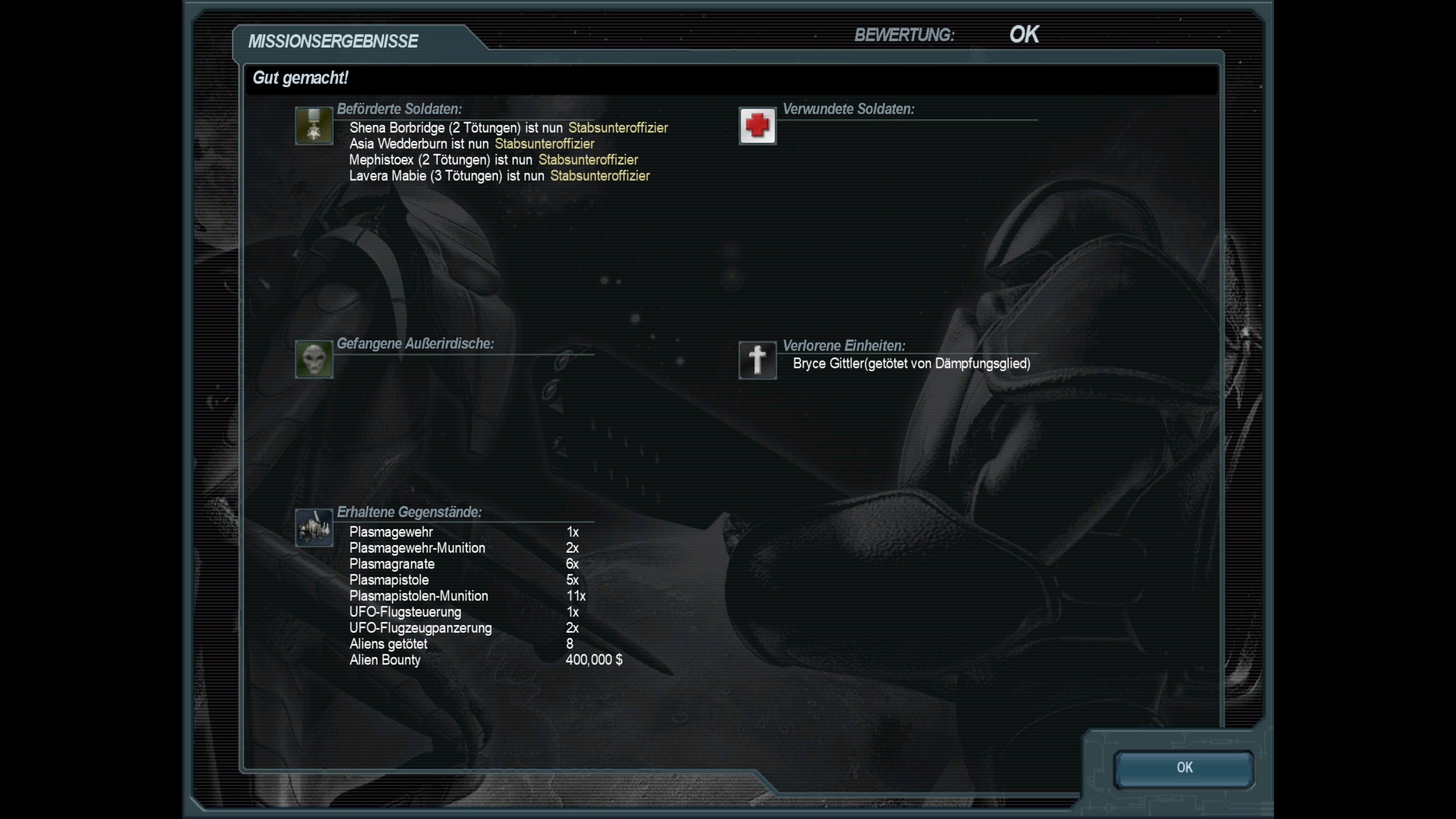 Abschluss der achtzehnten Mission; Bergung eines außerirdischen Spähers