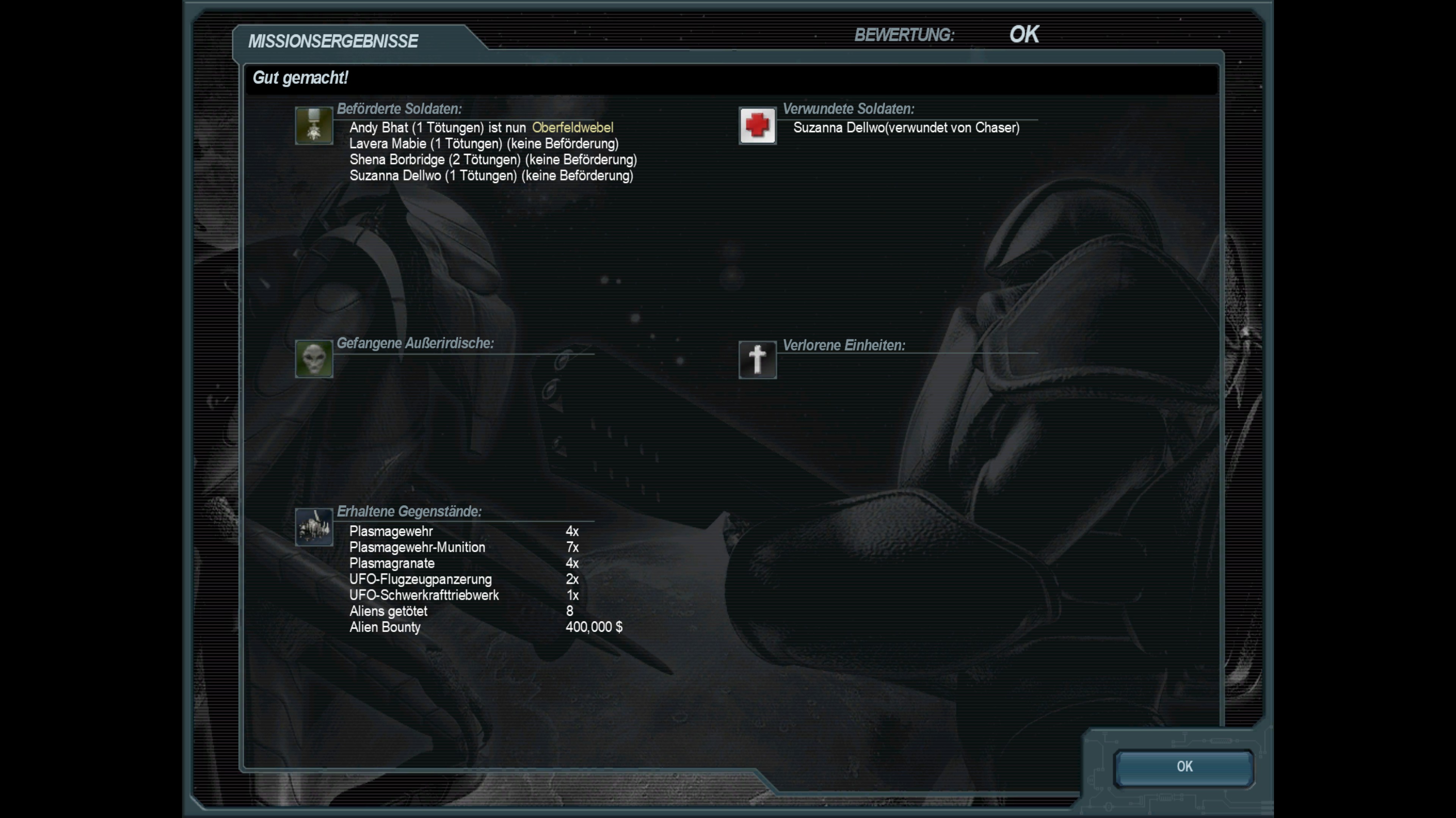 Abschluss der fünfundreißigsten Mission; Berung eines außerirdischen Jägers