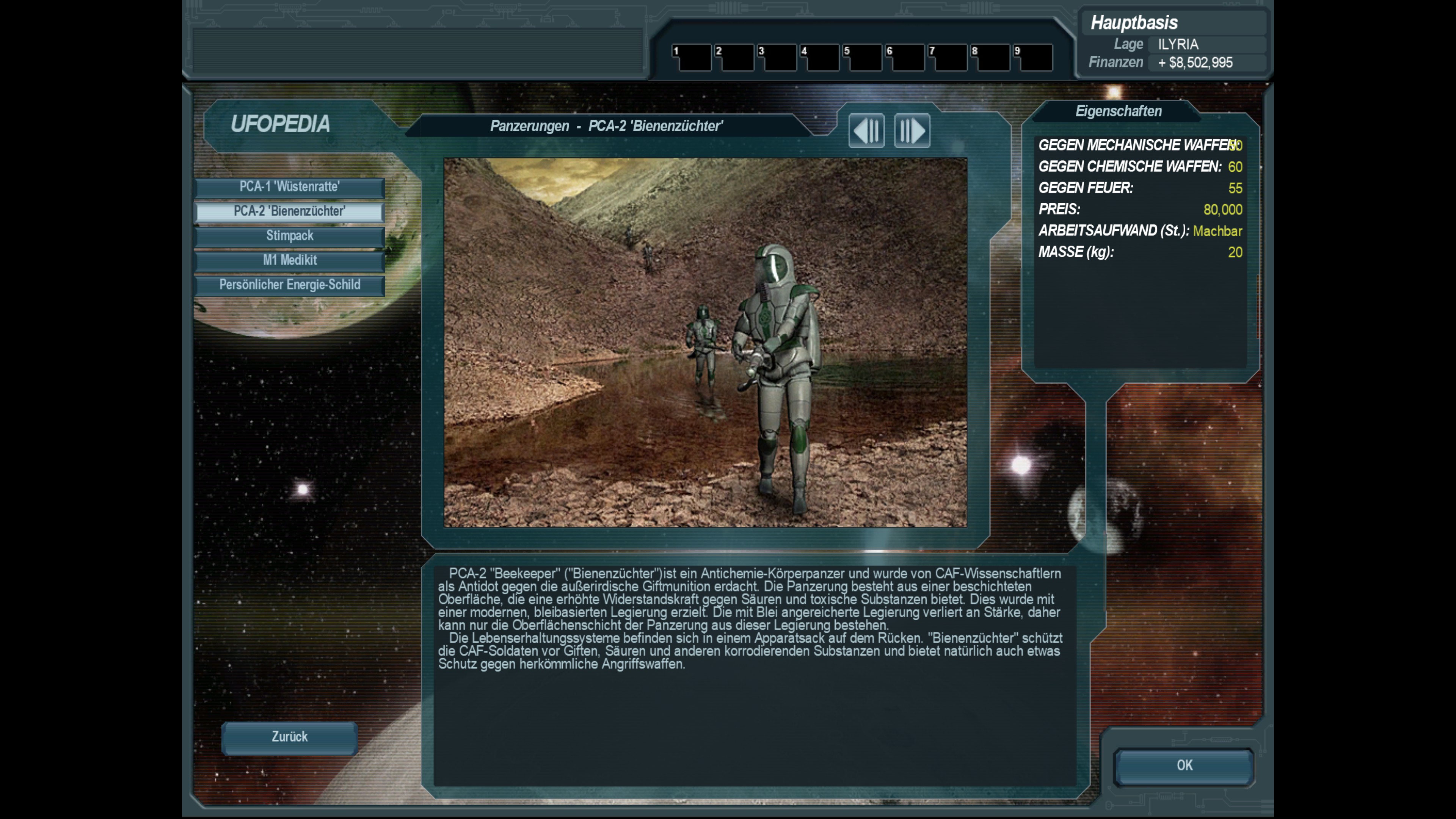 Nutzung einer älteren Technologie, welche im 19. und 20. Jahrhundert schon genutzt wurde (Bleiverstärkung) zur Entwicklung einer überarbeiteten und stark verbesserten Infanterie-Panzerung; Ausreizung der vorhandenen Standard-Technologie mit Bleiverstärkung auf Basis der UFO-Flugzeugpanzerung-Grundlagen zur Erhöhung des Infanterie-Schutzes für Militär und CAF-Spezialisten