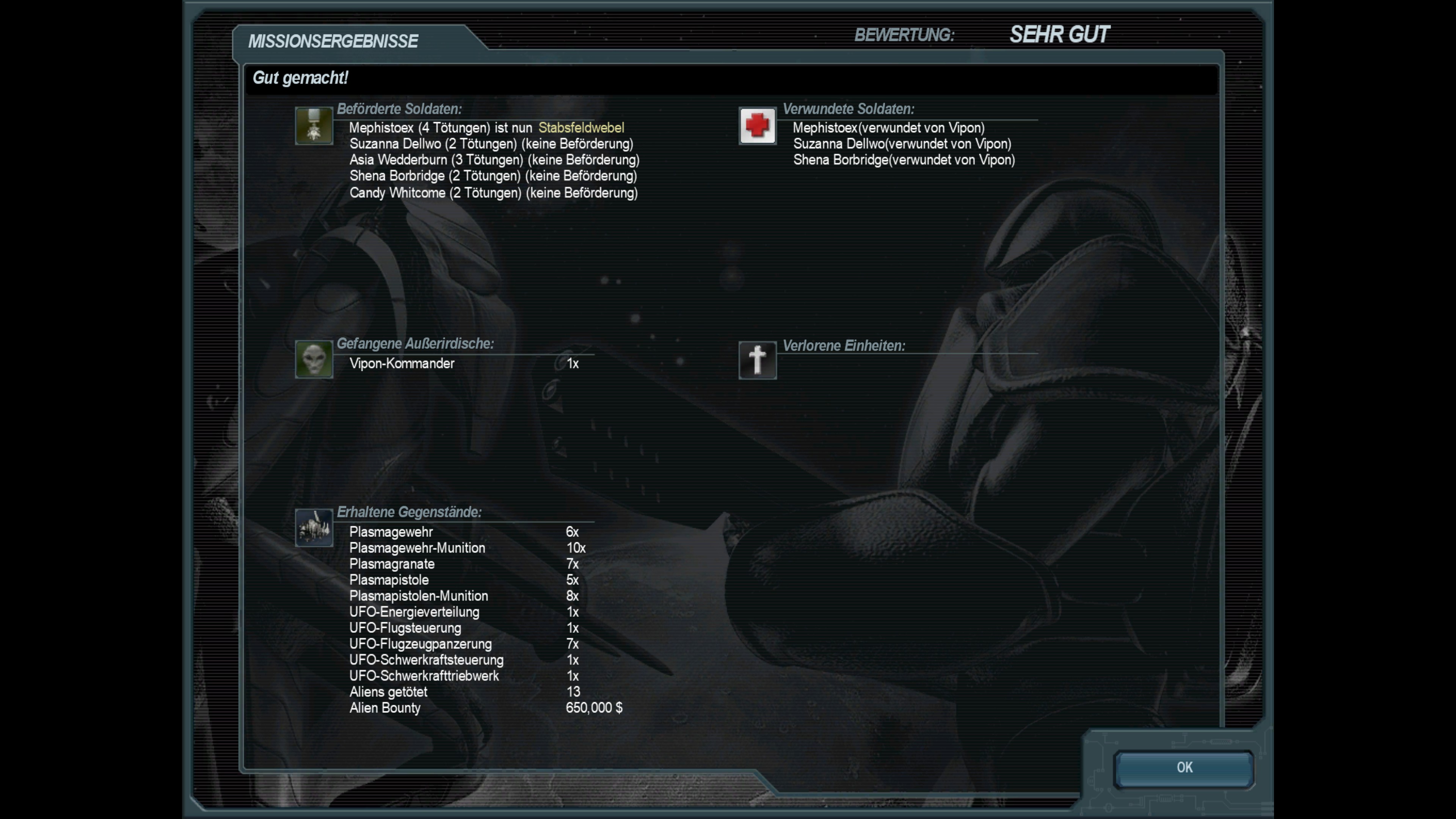 Abschluss der siebenundvierzigsten Mission; Bergung eines außerirdsichen Kreuzers