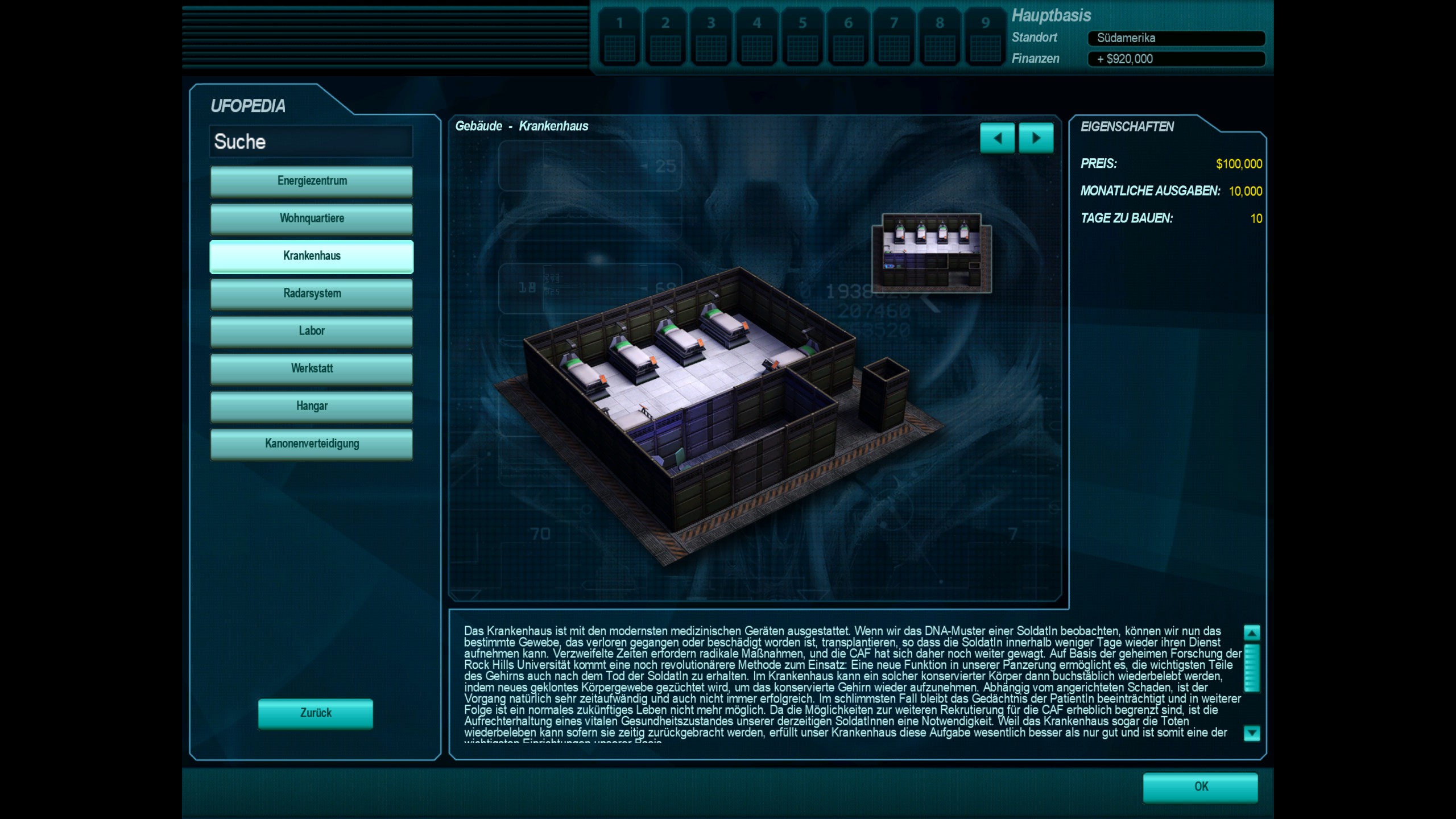 Zu Anfang verfügbares Gebäude zur Behandlung aller CAF-Spezialisten in der Hauptbasis