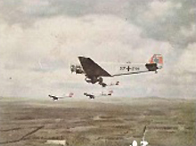 doch nur leicht heben sich die Fallschirme der nachfolgenden Maschinen gegen den trüb-diesigen Morgenhimmel ab.