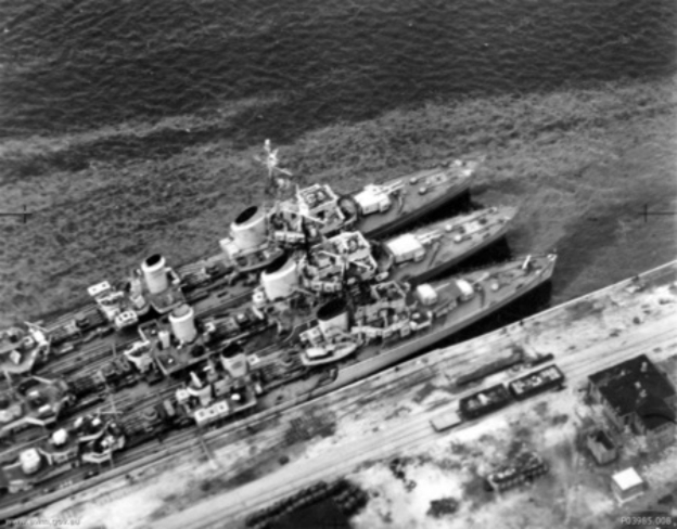 Three German destroyers in harbour in WWII