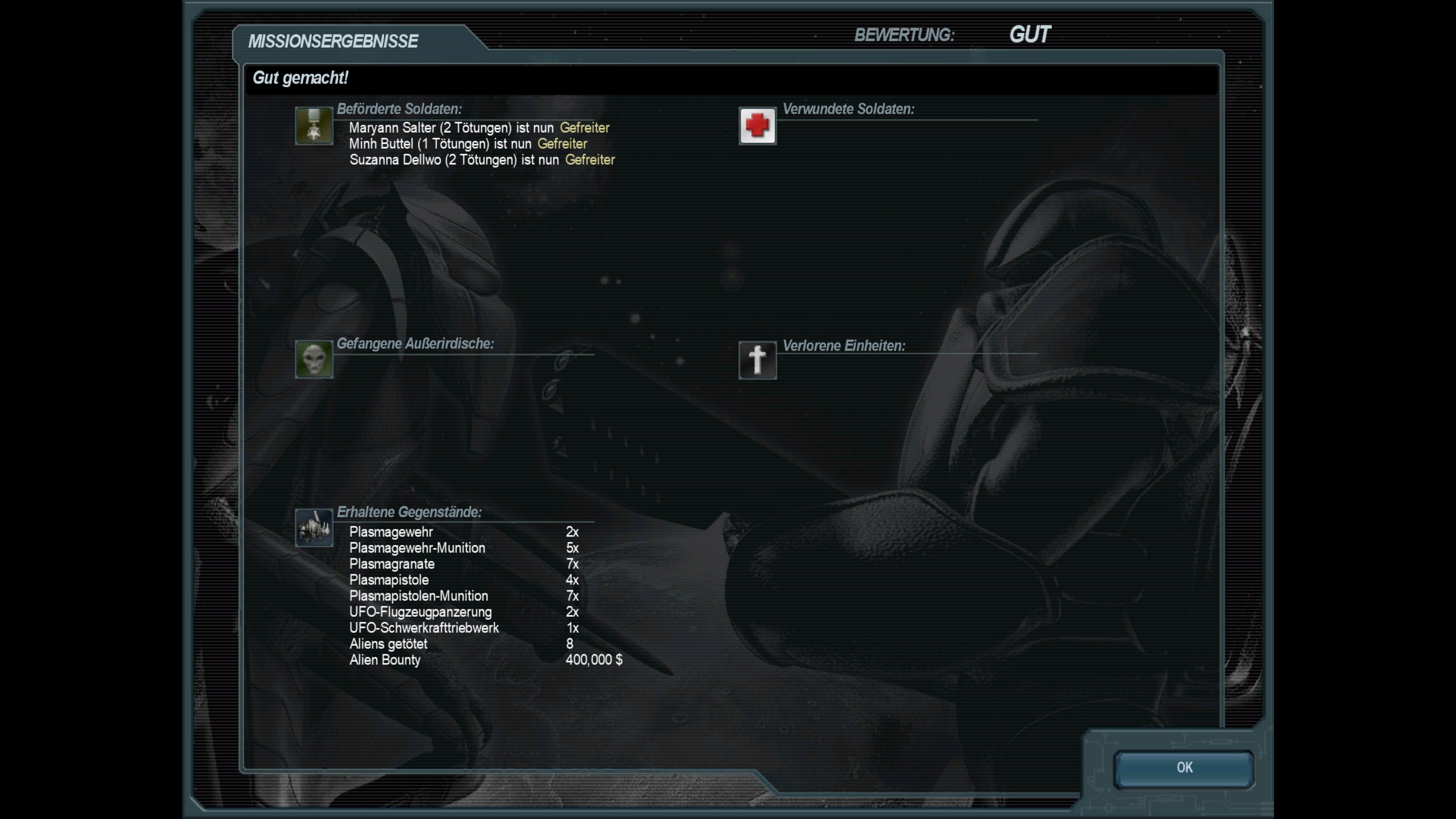 Abschluss der vierten Mission; Bergung eines außerirdischen Spähers