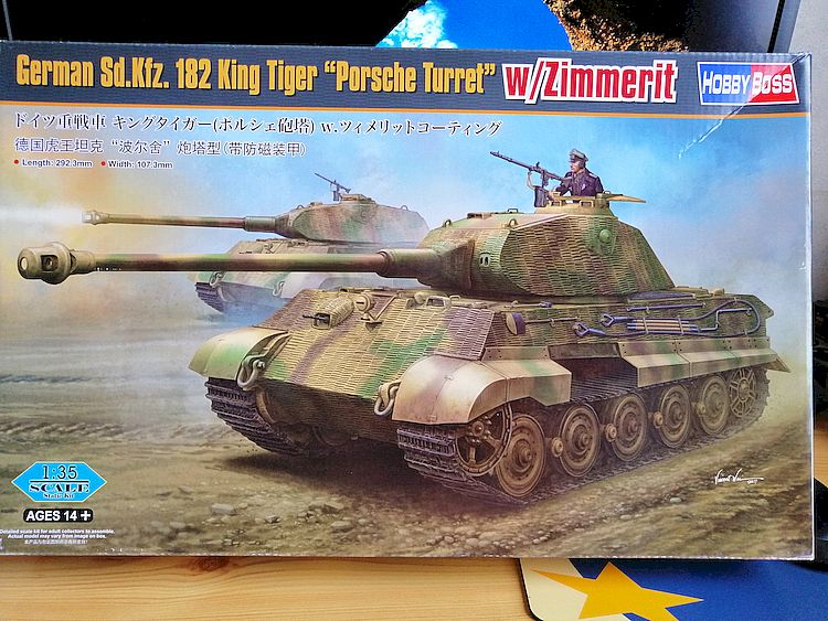 Zurück zu Panzerkampfwagen Tiger VI (Ausf. B), TIGER II (Sd. Kfz. 182) mit Porsche-Turm und Zimmerit, 1:35, von HobbyBoss